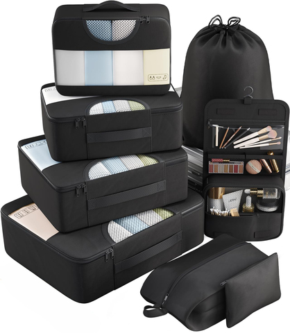 8 Set Pack würfel für Reisekoffer Organizer für Gepäck mit hängenden Toiletten artikeln und Schuh taschen Essentials Reise zubehör